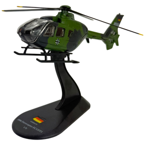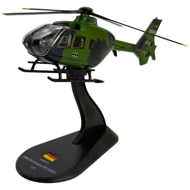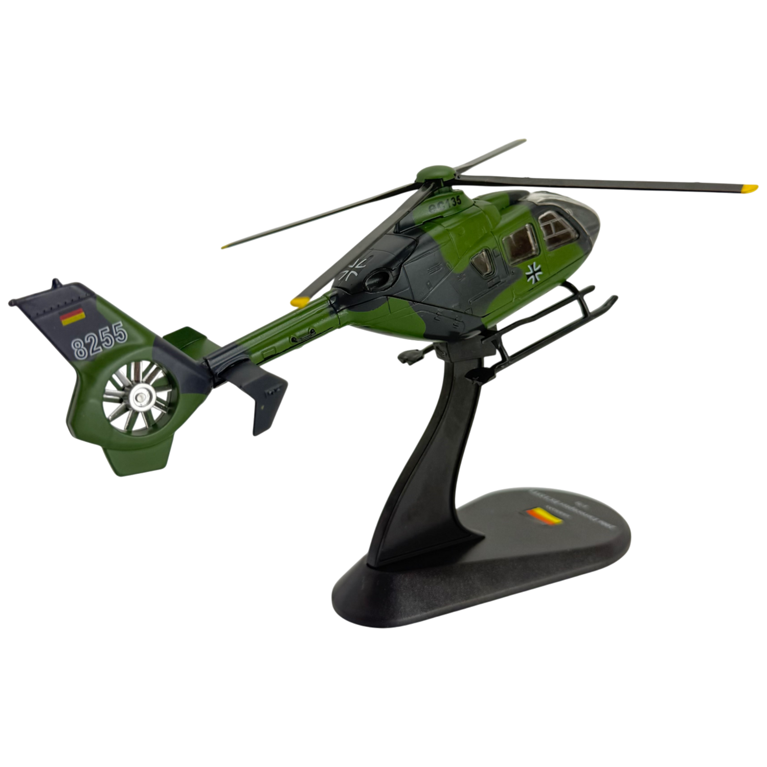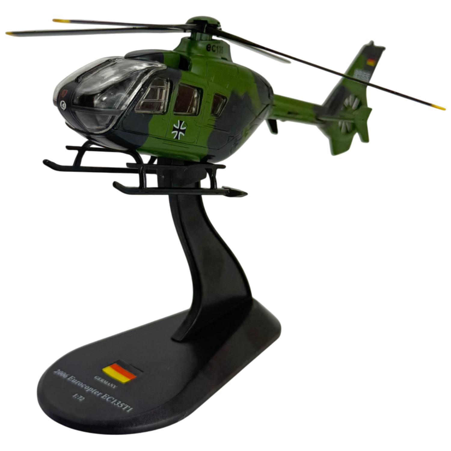 A 1/72 scale diecast helicopter model of a Eurocopter EC135.