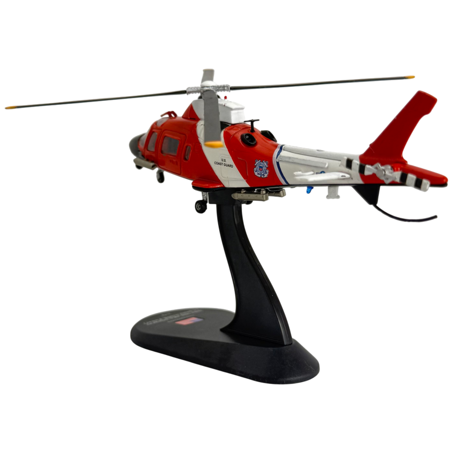 Engage the enemy with this high-speed 1/72 diecast helicopter replica of the MH-68A Stingray. Derived from the Agusta A109E Power, this sleek scale model captures the twin-engine, multi-purpose design first operated by the US Coast Guard’s HITRON anti-drug trafficking unit. It’s a true workhorse in the sky.