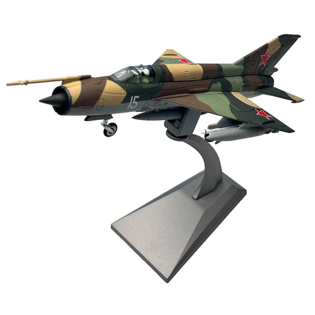 A 1/72 scale diecast metal aircraft model of a Mikoyan MiG-21.