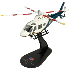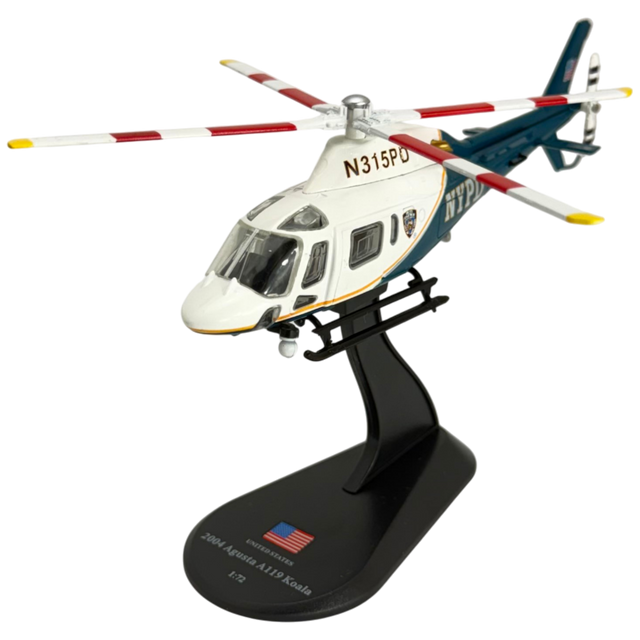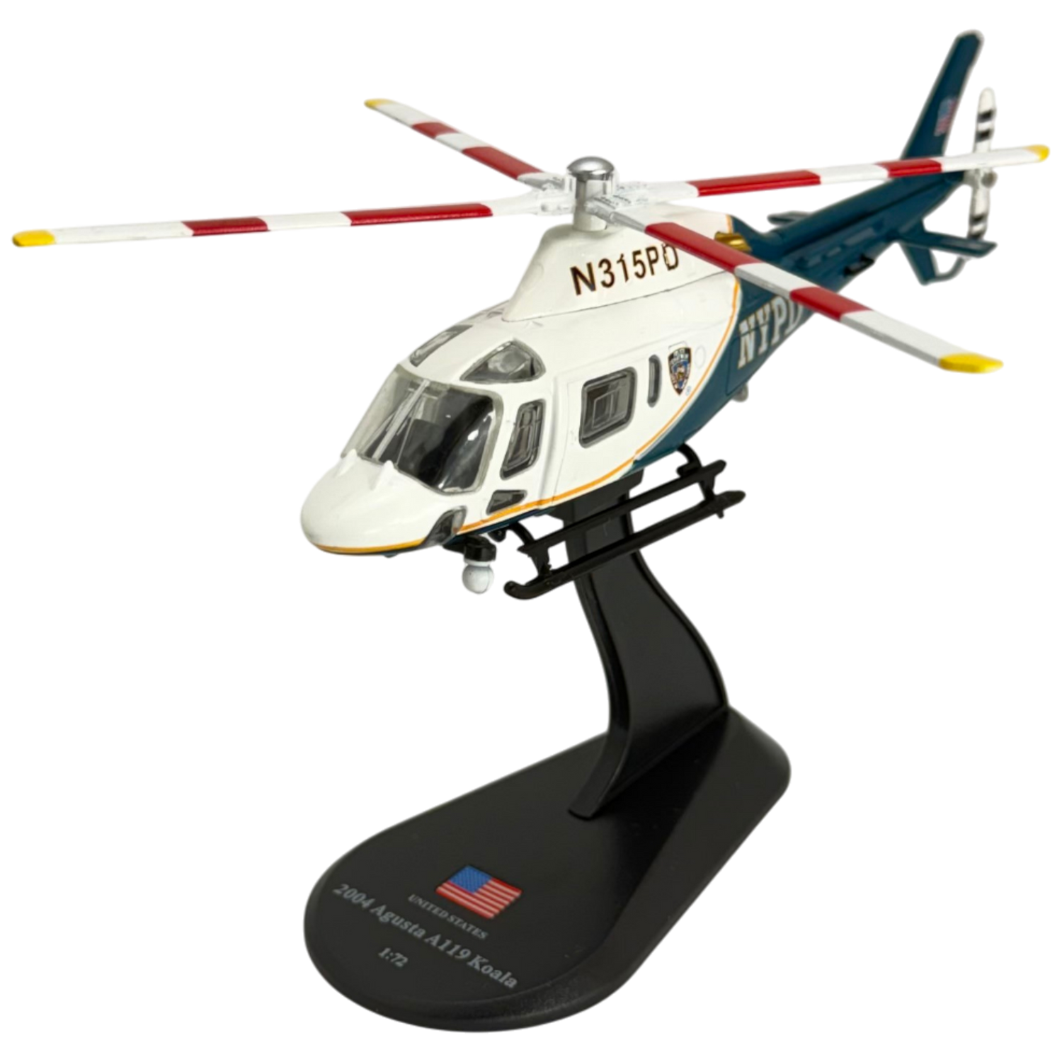 A 1/72 scale diecast helicopter model of a US NYPD Agusta A119 Koala.