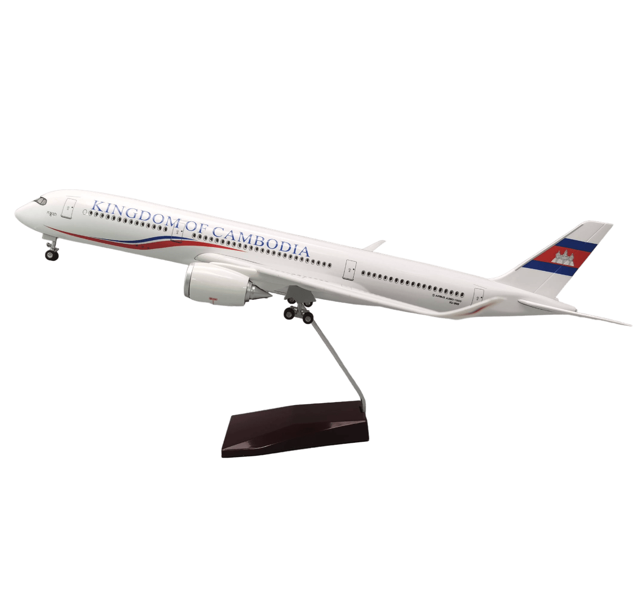An extra large 1/142 scale premium resin model of a Kingdom of Cambodia Airbus A350.